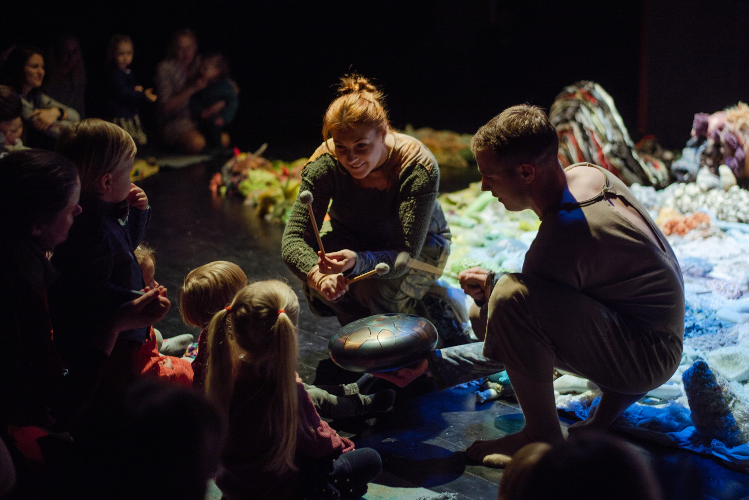 The performance „About the World” invites children to discover the world as a space of constant change, subject to natural cycles of which we ourselves are a part. The way to learn about it is through children’s senses – sight, touch and hearing.